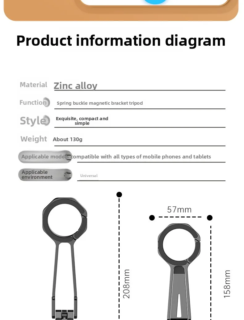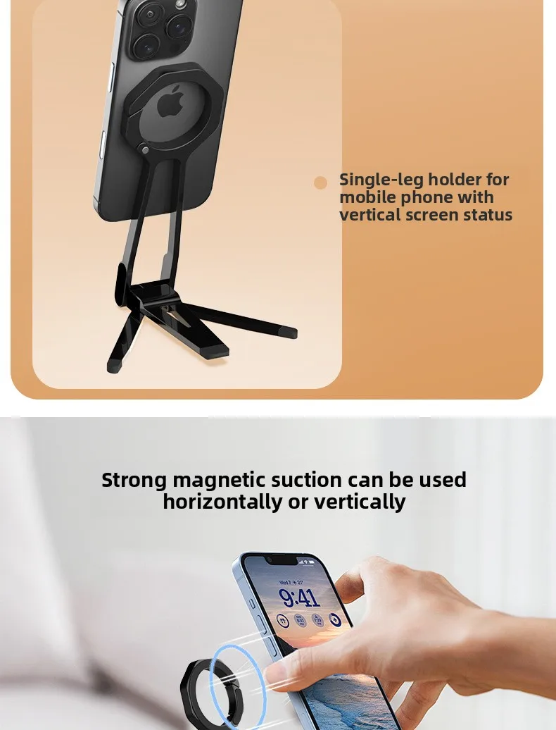 2025 Mobile Phone Magnetic Holder Spring Buckle Desktop 360 ° Rotating Portable Triangle Live Broadcast Stand
