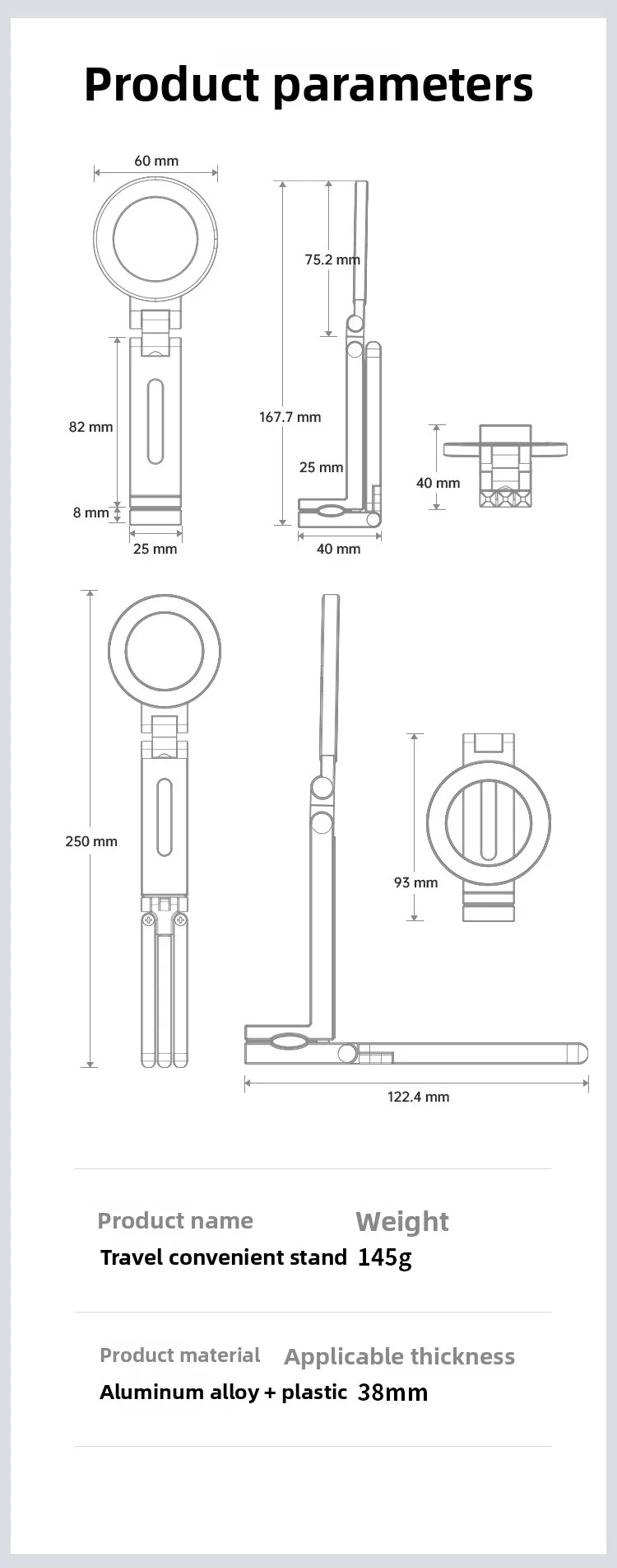 2025 Travel Mobile Phone Magnetic Holder Portable Clip Rotatefoldableneutral