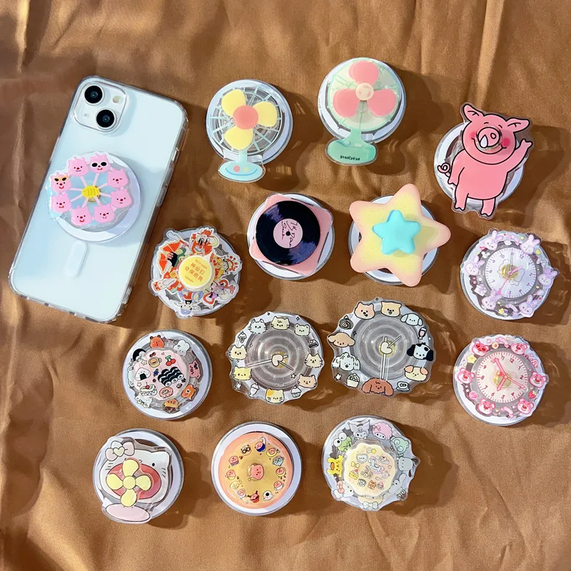 Cute Rotating Phone Grip Phone case Support Binge-watching Retractable Magnetic Desktop Bracket Surface Cover Back Sticker
