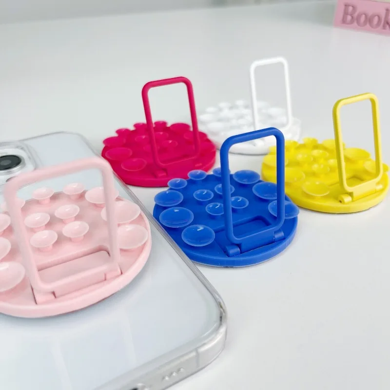 Round Mobile Phone Suction Cup Lazy Holder Mirror Wall Glass Artifact Portable Silicone Paste Popular Universal Holder