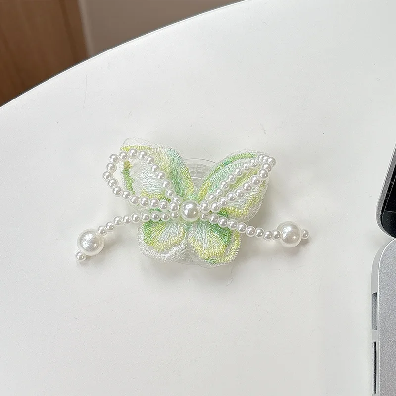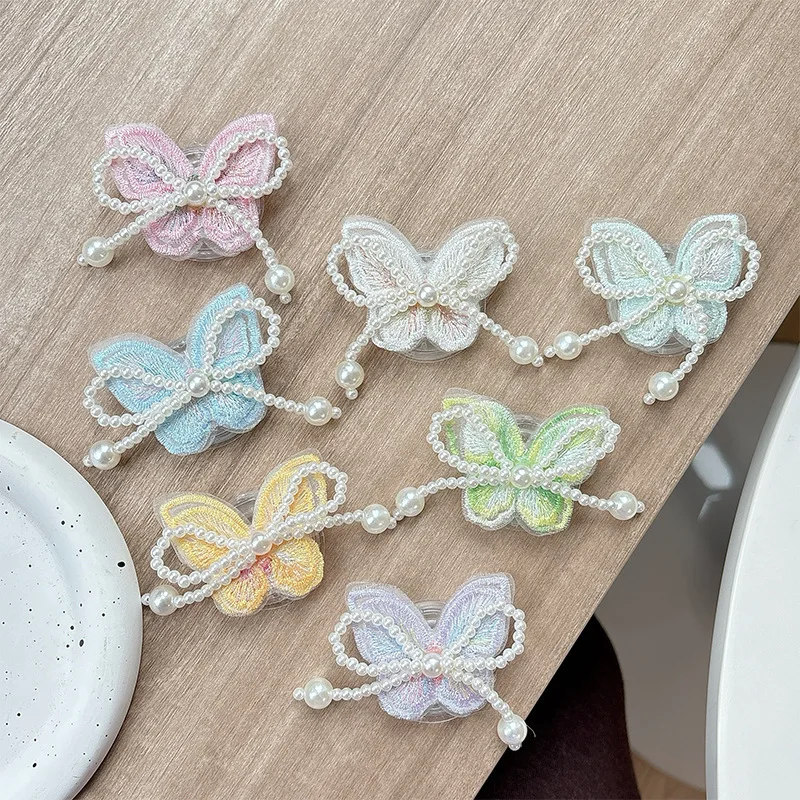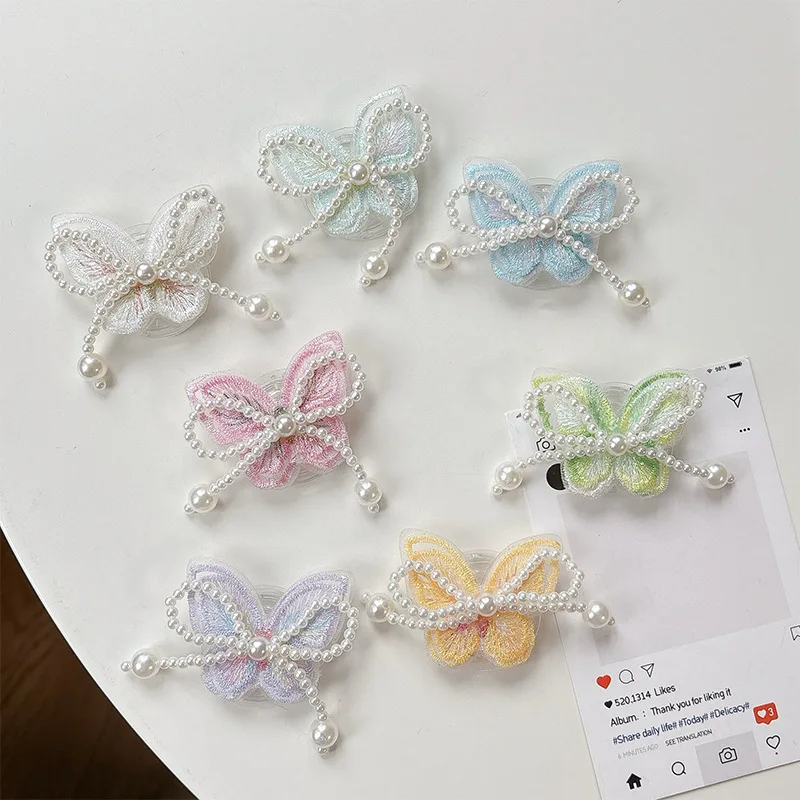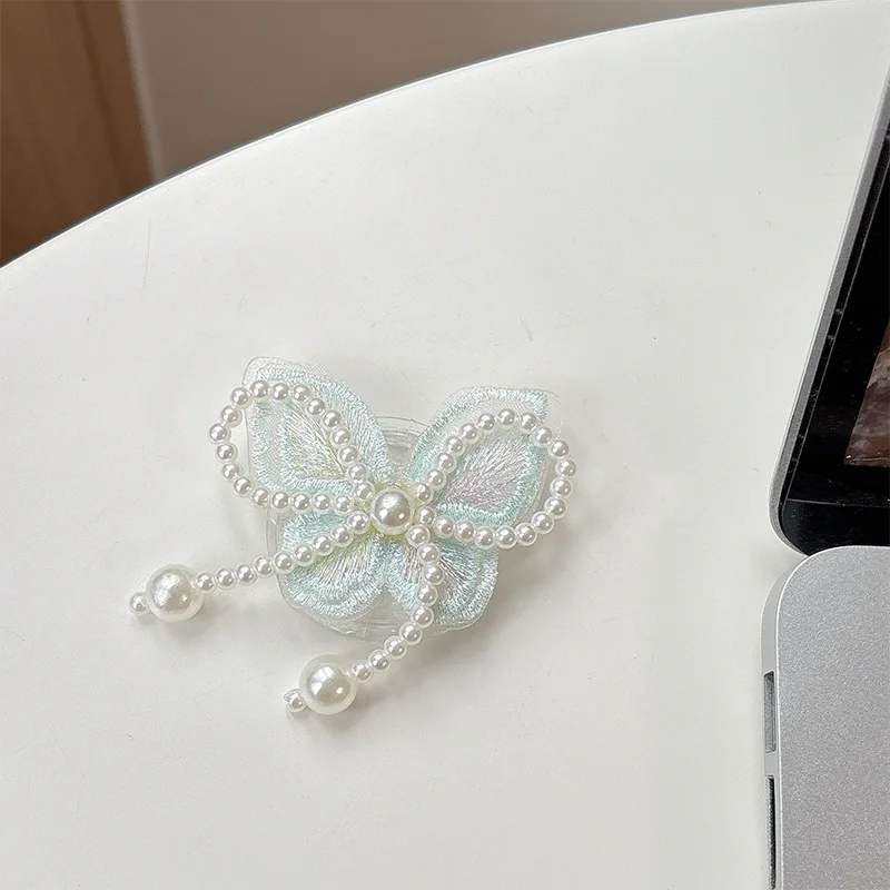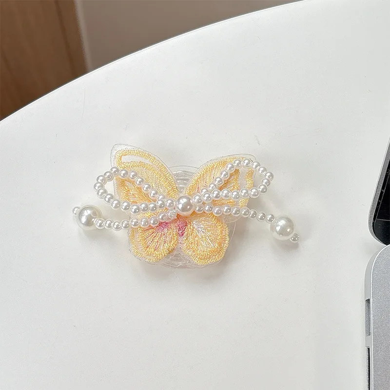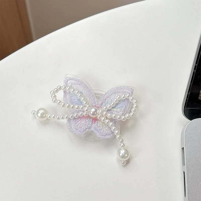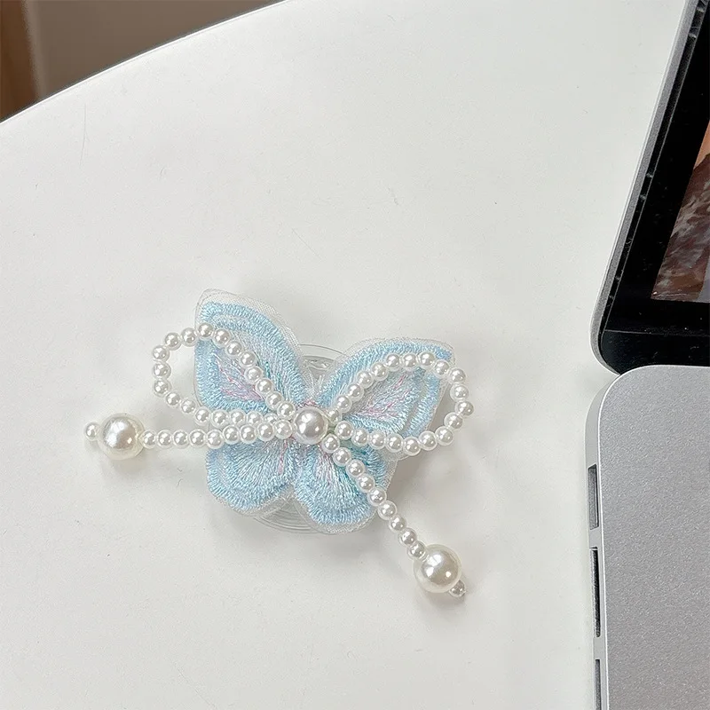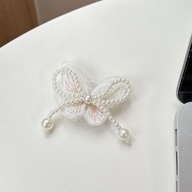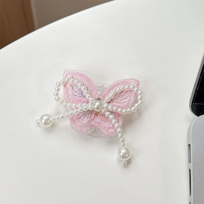 Small Fresh Style Pearl butterfly Phone Airbagholder Back Sticker Bow Tie Retractable Desktop Stable Support Frame