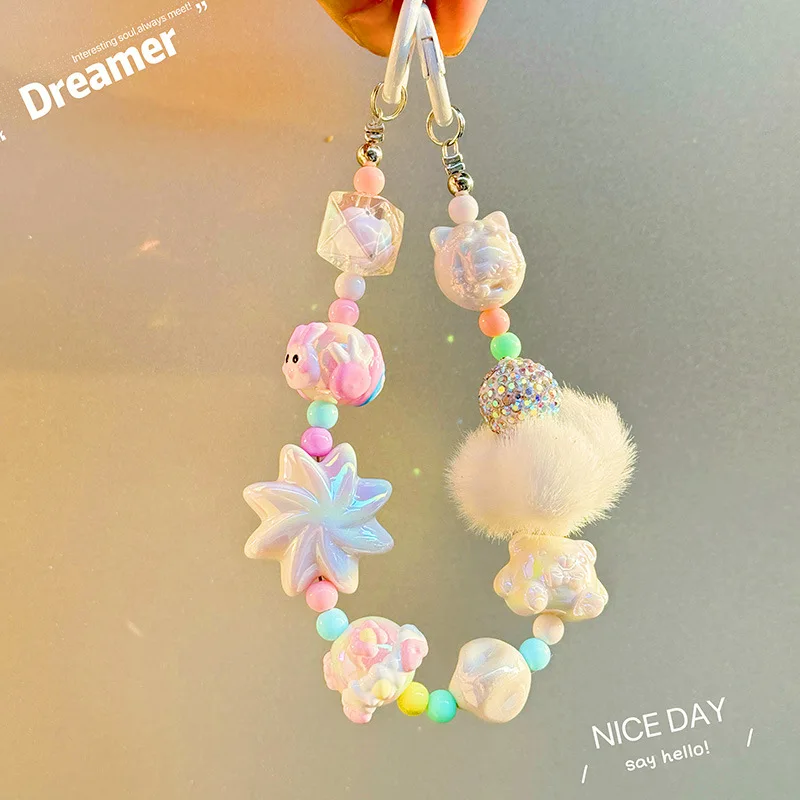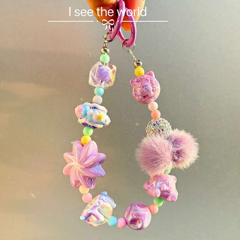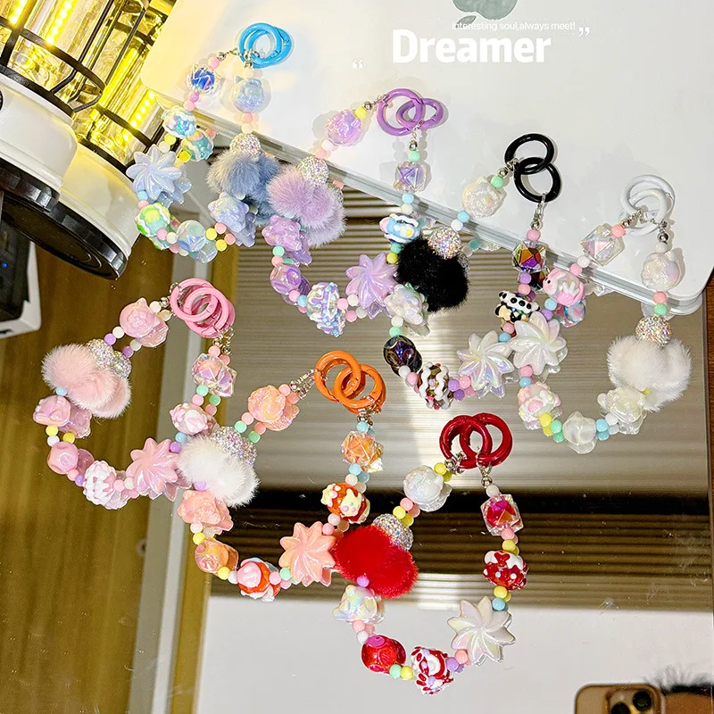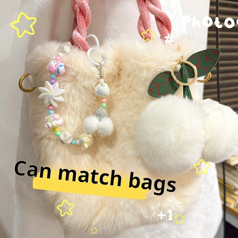 Winter fur ball big cyclone mobile phone chain beaded keychain pendant bag pendant xiaohongshu same style mobile phone pendant